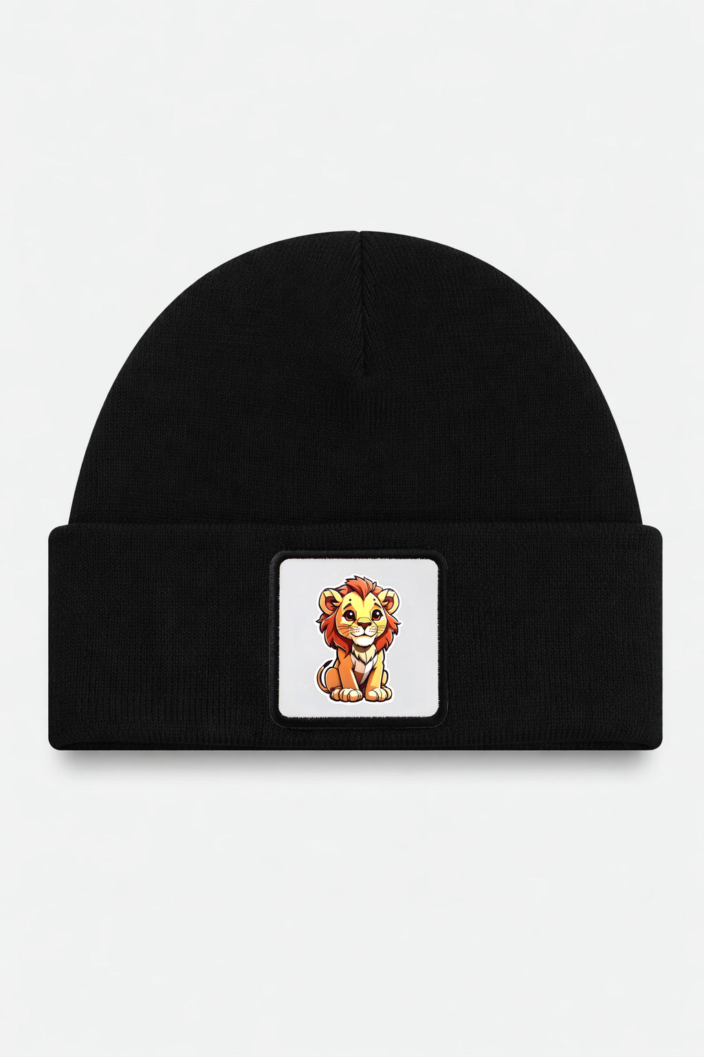 Black Kids' Beanie with Lion Logo