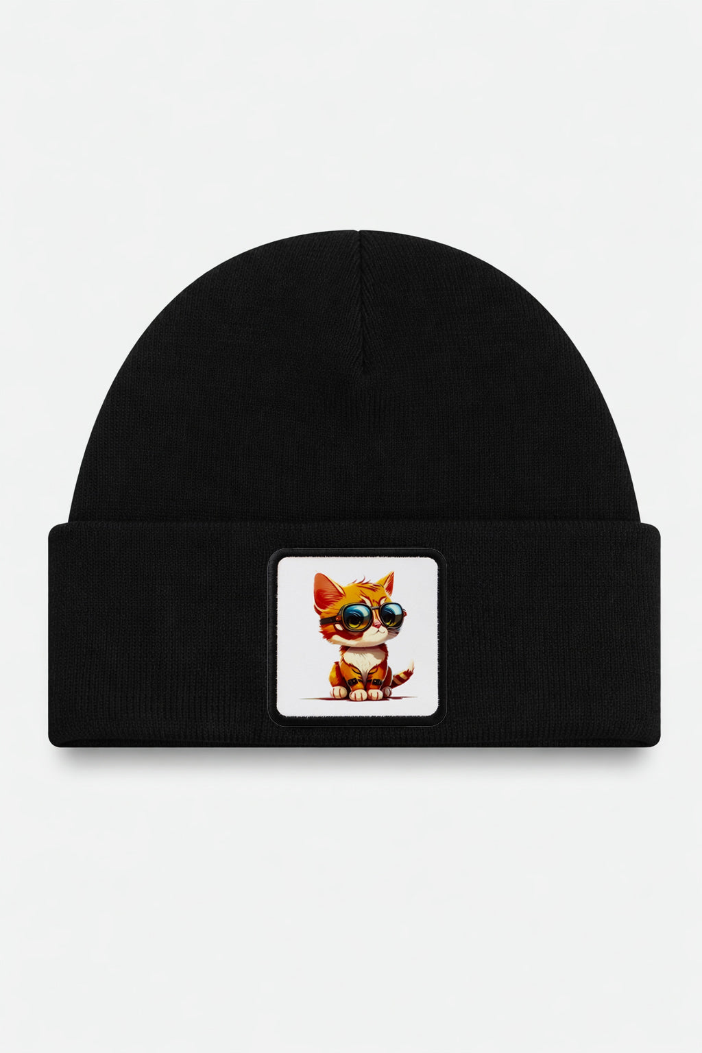 Black Kids' Beanie with Cat Logo