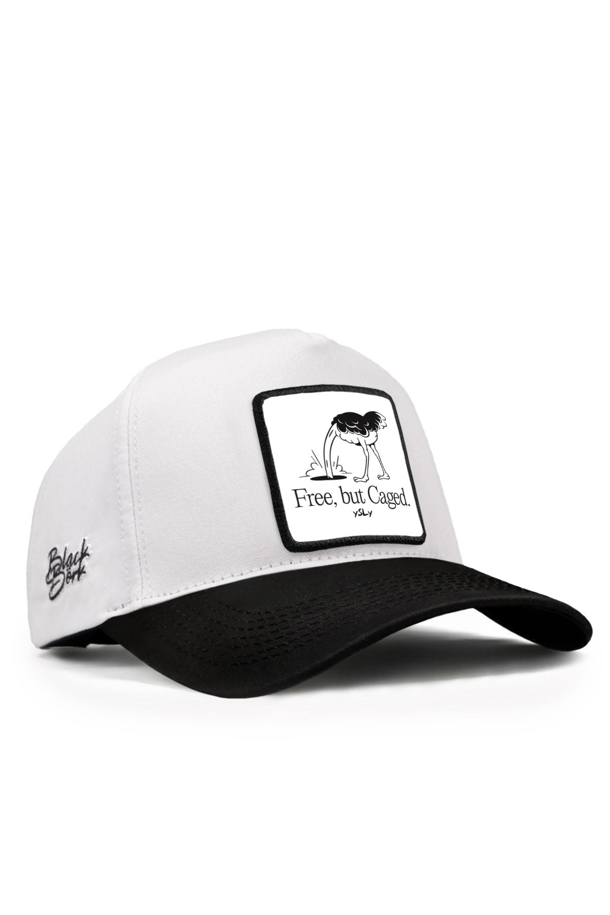 Free, But Caged Logolu Siyah-Beyaz Beyzbol Şapka
